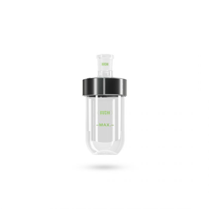 Beaker flask Evap., bayonet type, flat bottom, SJ24/40, 500mL Bayonet mount type Ø75mm. Working volume 150mL. Content: 1 coupling piece, 1 seal, 1 flask and 1 beaker fastener.
